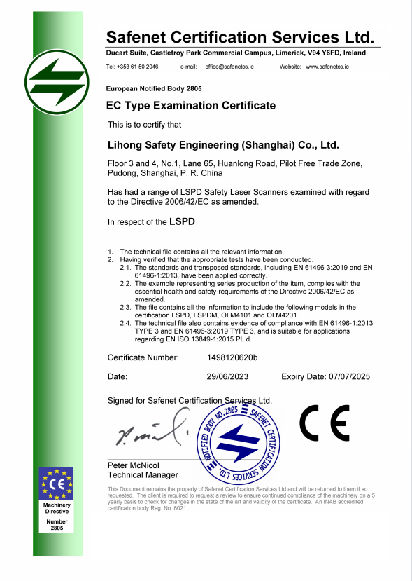 · 提供實時危險區域檢測 · 長達3米不規則安全檢測保護 · 可根據現現場環境設置避障 · 應用于能安全輸出的停止設備 | ![]() |